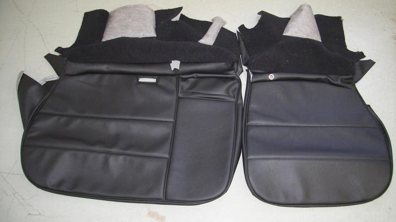 Lös klädsel i vinyl uppsydd enligt original i sömmar samt kedrar. Fram och baksäte samt bakstyckena till fram ryggarna Sydda helt efter original .