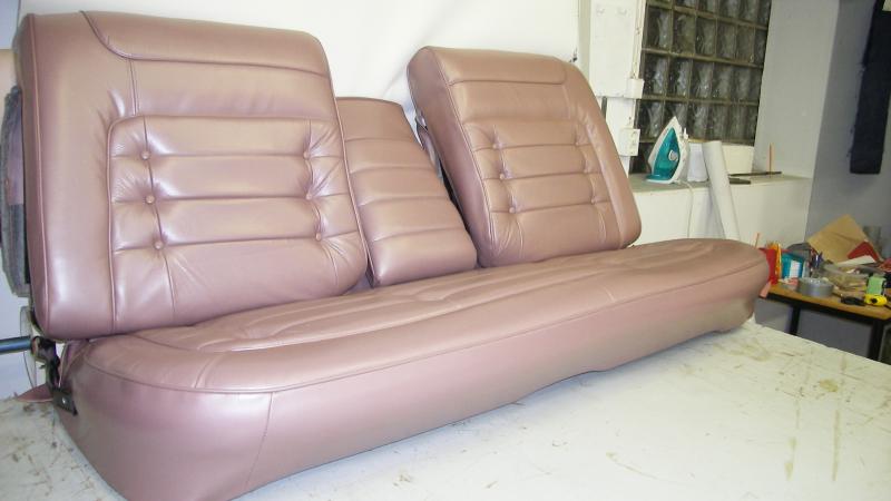 Lös klädsel i vinyl uppsydd enligt original i sömmar samt kedrar. Fram och baksäte samt bakstyckena till fram ryggarna Sydda helt efter original .