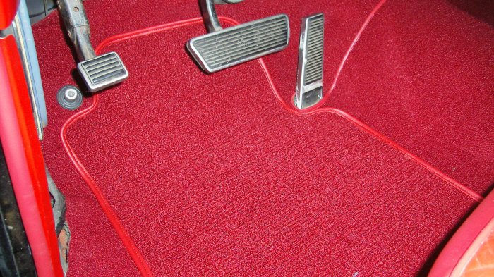 En sats med skyddsmattor 4 st formade efter originalgolvetkantade i passande färg alla är oliksidiga för passformens skull.